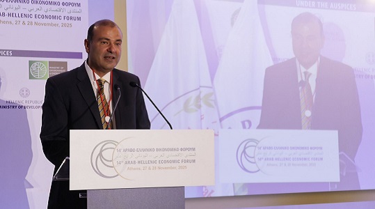 Khaled Hanafy from the “14th Arab–Hellenic Forum” in Athens, Greece: The Union of Arab Chambers Launches 4 Key Initiatives to Strengthen the Strategic Partnership Between Greece and the Arab World